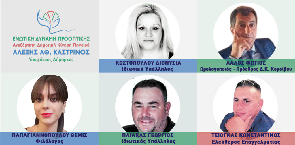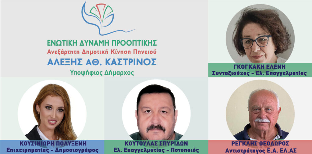 Βρισκόμαστε στην τελική ευθεία ολοκλήρωσης του ψηφοδελτίου του συνδυασμού μας ΄΄ΕΝΩΤΙΚΗ ΔΥΝΑΜΗ ΠΡΟΟΠΤΙΚΗΣ΄΄, Ανεξάρτητη Δημοτική Κίνηση Πηνειού.