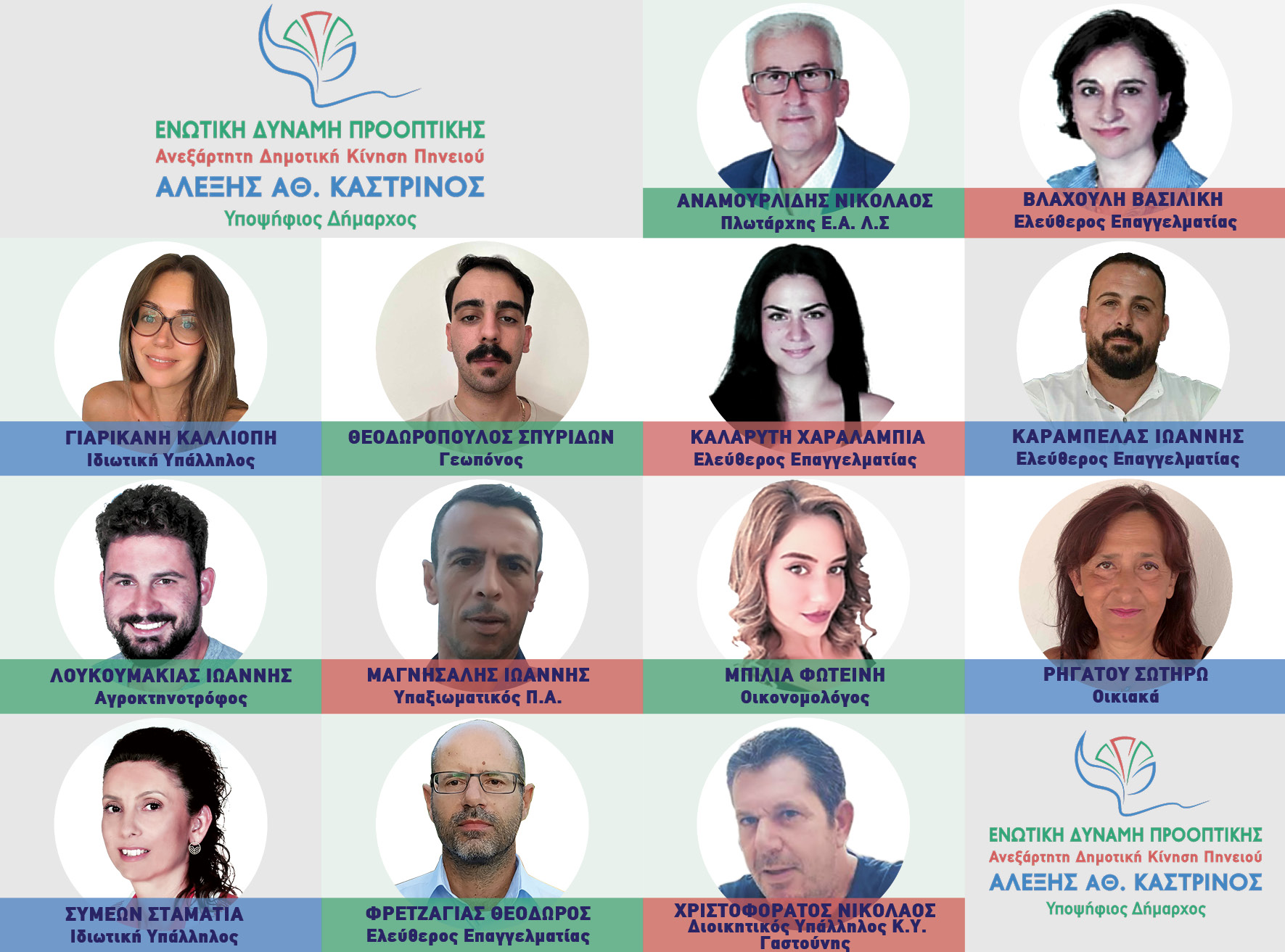 Βρισκόμαστε στην τελική ευθεία ολοκλήρωσης του ψηφοδελτίου του συνδυασμού μας ΄΄ΕΝΩΤΙΚΗ ΔΥΝΑΜΗ ΠΡΟΟΠΤΙΚΗΣ΄΄, Ανεξάρτητη Δημοτική Κίνηση Πηνειού.