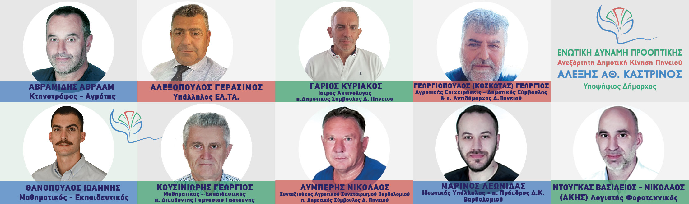 Συνεχίζουμε την παρουσίαση του ψηφοδελτίου του συνδυασμού μας ΄΄ΕΝΩΤΙΚΗ ΔΥΝΑΜΗ ΠΡΟΟΠΤΙΚΗΣ΄΄, Ανεξάρτητη Δημοτική Κίνηση Πηνειού που πλαισιώνεται από ένα μείγμα έμπειρων, νέων προσώπων αλλά κυρίως νέων ανθρώπων που μας ενώνει η αγάπη για τον τόπο μας και η διάθεση για προσφορά.