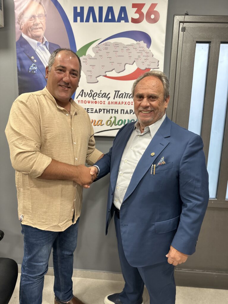 Με εντατικούς ρυθμούς συνεχίζονται οι επαφές του υποψηφίου δημάρχου Ήλιδας Ανδρέα Παπαδάκου προκειμένου να ολοκληρωθεί η συμπλήρωση του ψηφοδελτίου του ενόψει των εκλογών του Οκτωβρίου.