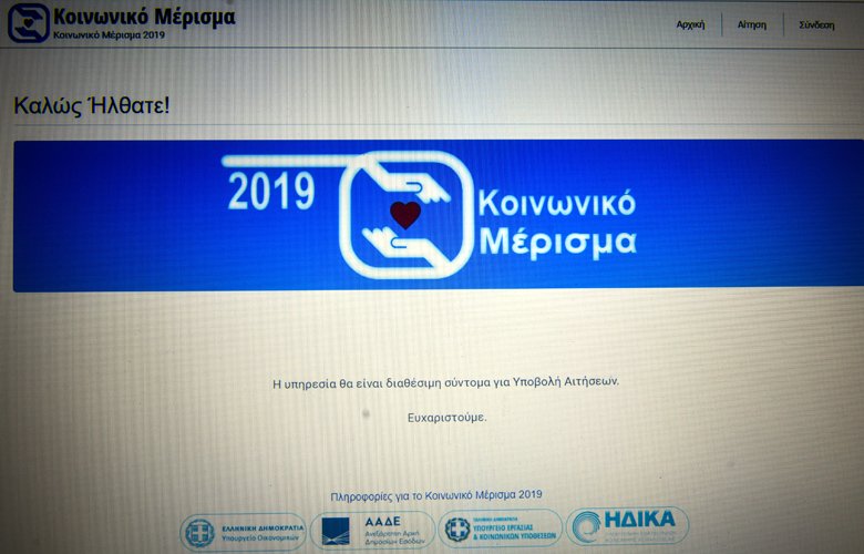 Ανοίγει σήμερα Πέμπτη νέα συμπληρωματική σελίδα για το κοινωνικό μέρισμα 2019 για όσους απορρίφθηκαν οι αιτήσεις τους και θέλουν να υποβάλλουν αιτήσεις.