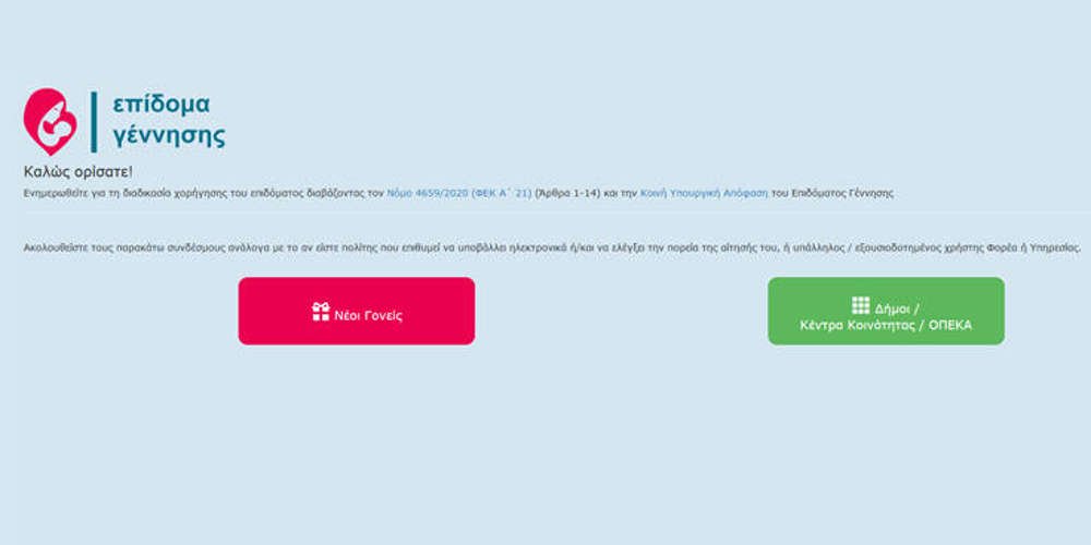 Άνοιξε η πλατφόρμα epidomagennisis.gr για τη χορήγηση του επιδόματος γέννησης.