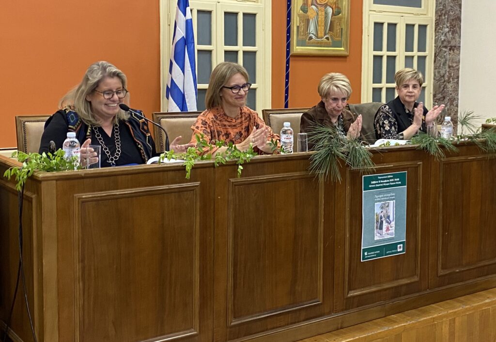 Για το βιβλίο μίλησαν με γλαφυρό τρόπο οι Γιολάντα Αποστολοπούλου, Πρόεδρος του Συνδέσμου Φιλολόγων, Κατερίνα Παρασκευοπούλου, Πρόεδρος του Λυκείου Ελληνίδων και Καρολίνα Κολιοπούλου, η εικονογράφος του βιβλίου και κόρη της συγγραφέως, οι οποίες μετέφεραν το κοινό στον Πύργο του χθες, εκεί όπου η συγγραφέας έζησε τα παιδικά της χρόνια.
