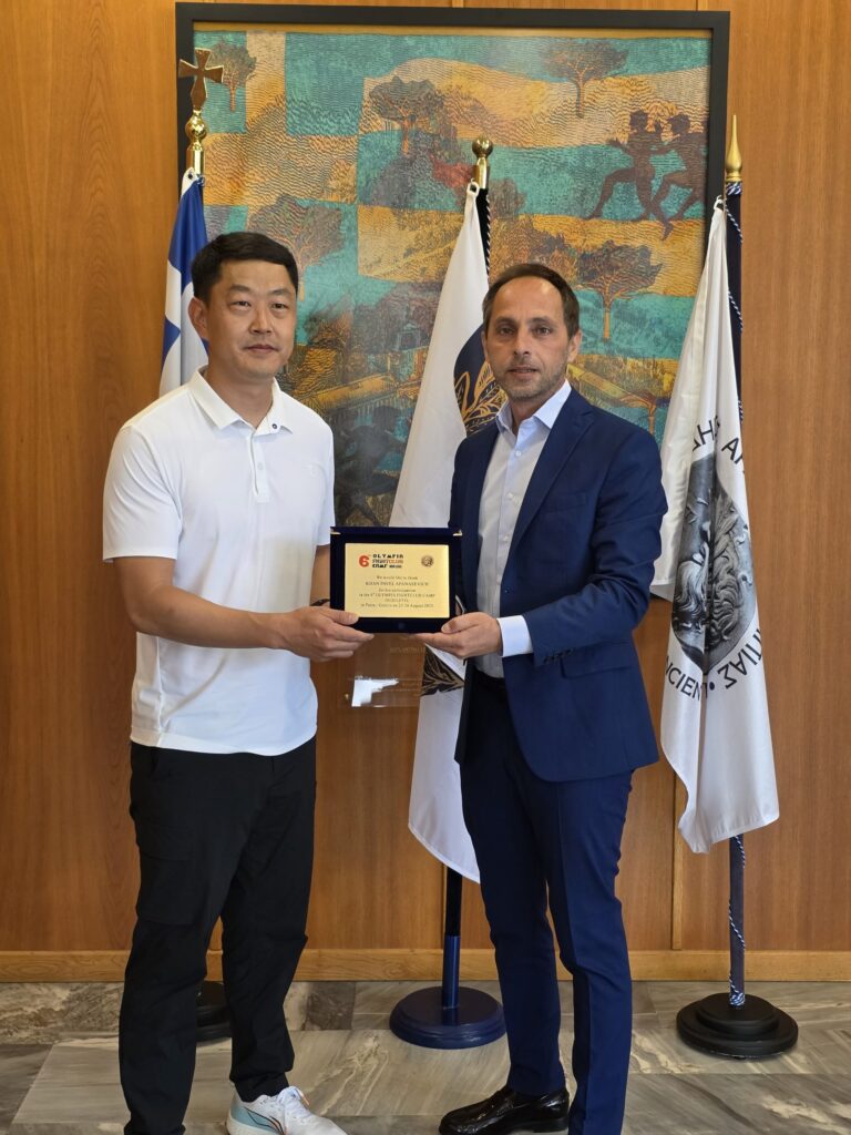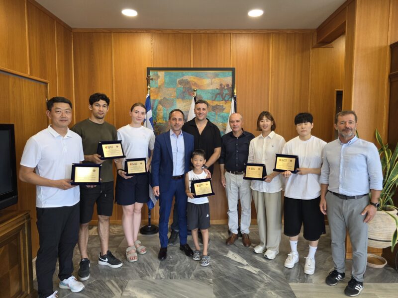 Τέσσερις Ολυμπιονίκες και Παγκόσμιους Πρωταθλητές Taekwondo υποδέχτηκε, την Παρασκευή, ο Δήμαρχος Αρχαίας Ολυμπίας, Αριστείδης Παναγιωτόπουλος, στο πλαίσιο του 6ου Olympian Fight Club Patras, του αθλητικού διεθνούς Camp Taekwondo. Πρόκειται για τους Pavel Khan (Ρώσος προπονητής και κάτοχος 2 χρυσών ολυμπιακών μεταλλίων στο Τόκιο 2020 και στο Παρίσι 2024), Ah Reum Lee (Χρυσή Παγκόσμια Πρωταθλήτρια από την Σεούλ της Κορέας), Svetlana Osipova (Ασημένια Ολυμπιονίκης στο Παρίσι 2024 και Χρυσή στο Παγκόσμιο Πρωτάθλημα 2023) και Jaysunov Jasurbek (Χρυσός στο Grand Slam στην Κίνα).