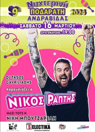 Το Σάββατο 16 Μαρτίου έρχεται η ώρα του ξεφαντώματος! Στις 19:00 η μεγάλη παρέλαση με παρουσιαστή τον Νίκο Ράπτη, τον DJ Tasos Gavriliadis στη μουσική και μαζί τους την Νίκη Μπουτζαρέλη!