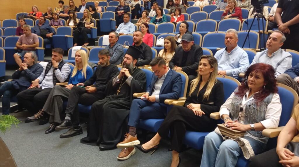Το αμφιθέατρο γέμισε από εκπροσώπους αρχών και φορέων, αλλά και από πολίτες που συνδέονται με τον καλλιτέχνη και θέλησαν να τιμήσουν την 33χρονη προσφορά του στον τόπο.