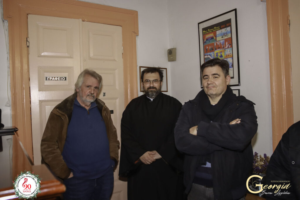 Την πίτα της βραδιάς προσέφερε ο Ταμίας του Συλλόγου/Ωδείου Άλκης Κωνσταντόπουλος, επιχειρηματίας. Το χρήσιμο δώρο που αντιστοιχούσε στο φλουρί της πίτας, προσέφερε η Δώρα Κορκολή με τα βιβλιοπωλεία Κορκολή. Τα ηδύποτα που συνόδευσαν το κέρασμα, προσέφερε η Ποτοποιία Παντελή Μυλωνά. Την φωτογραφική κάλυψη είχε το φωτογραφείο Γερμανού19, Βασίλη Αγγελάκου.