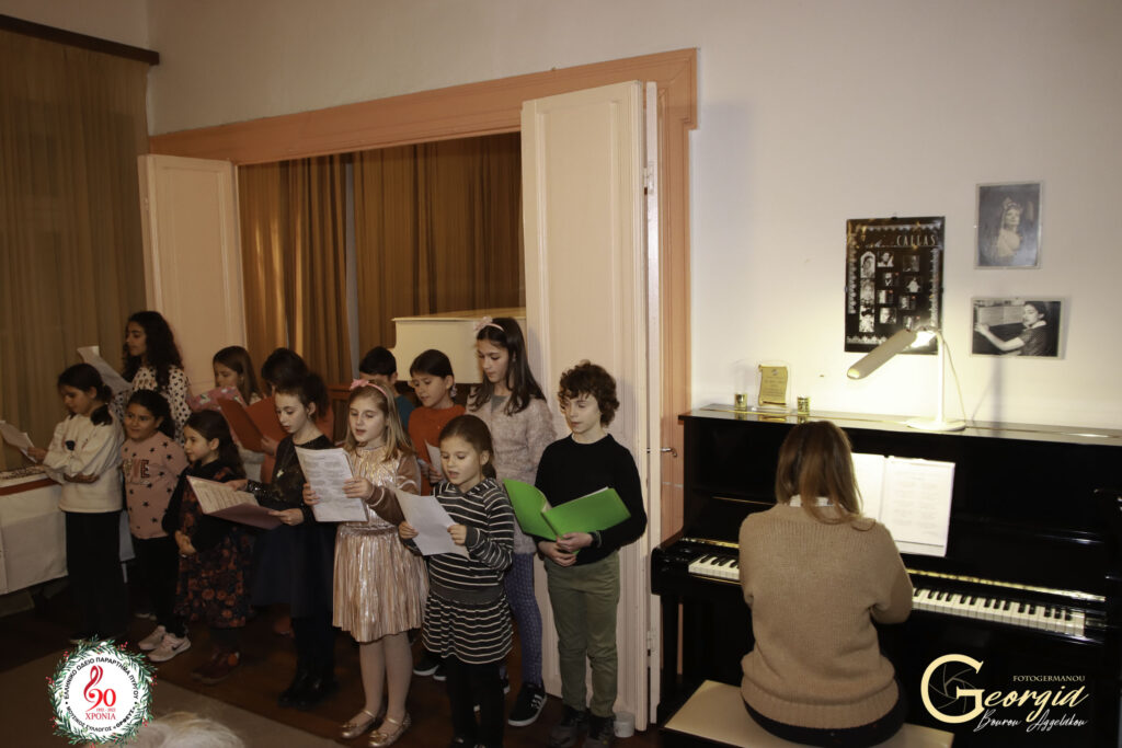 Το σύντομο καλλιτεχνικό πρόγραμμα άνοιξε η παιδική εφηβική χορωδία του Ωδείου υπό την διεύθυνση της Μαρίας Ασημακοπούλου, που ερμήνευσε τα κομμάτια «Στου καινούργιου χρόνου την αυλή», στίχοι/μουσική Γιώργος Χατζηπιερής, και «Τι΄ναι η μουσική» ελληνικοί στίχοι Μαριάννα Μιχαλαρέα/μουσική Angelo Branduardi.