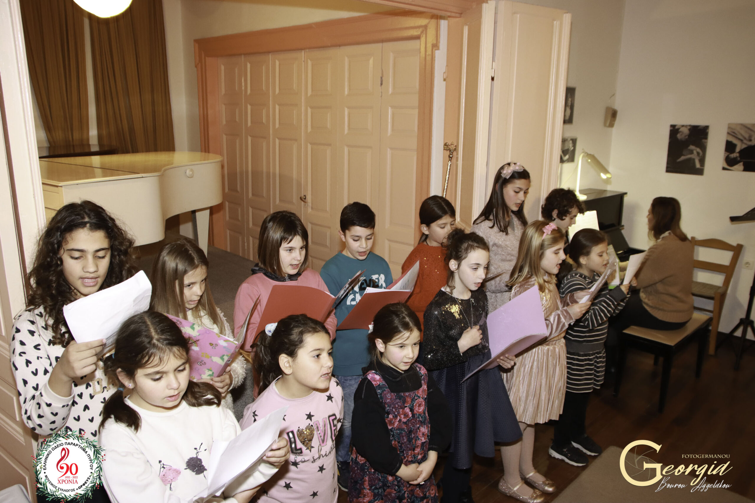 Το σύντομο καλλιτεχνικό πρόγραμμα άνοιξε η παιδική εφηβική χορωδία του Ωδείου υπό την διεύθυνση της Μαρίας Ασημακοπούλου, που ερμήνευσε τα κομμάτια «Στου καινούργιου χρόνου την αυλή», στίχοι/μουσική Γιώργος Χατζηπιερής, και «Τι΄ναι η μουσική» ελληνικοί στίχοι Μαριάννα Μιχαλαρέα/μουσική Angelo Branduardi.