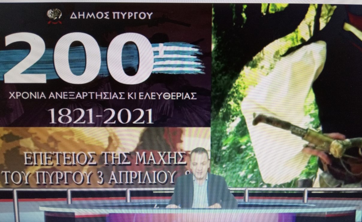 Ολοκληρώνοντας αναφέρθηκε στην ιστορική μάχη της 3ης Απριλίου 1821 στον Πύργο τονίζοντας την μεγάλη της σημασία κατά την διάρκεια της Επανάστασης στην Ηλεία ενώ ευχαρίστησε τον Δήμαρχο Πύργου για την προσπάθεια που κάνει ώστε να αναδείξει και να προβάλει την τοπική ιστορία του Δήμου.