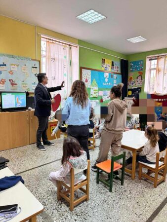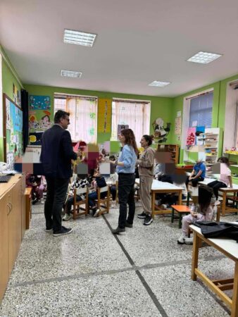 Ο Δήμαρχος Ανδραβίδας-Κυλλήνης Γιάννης Λέντζας μαζί με την Αντιδήμαρχο Παιδείας, Πολιτισμού και Κοινωνικής Πολιτικής Γεωργία Κακαλέτρη, επισκέφθηκαν το Νηπιαγωγείο Βάρδας και τους μικρούς μαθητές και μαθήτριές του.