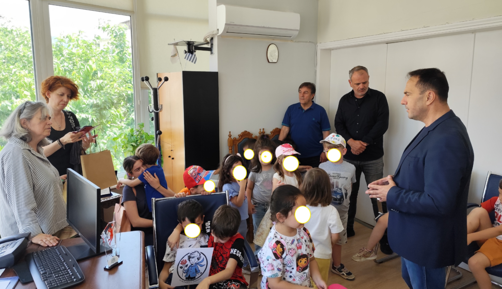 Μια ευχάριστη και ζωντανή νότα έδωσαν στην καθημερινότητα του Δημαρχείου οι μικροί μαθητές του 1ου Νηπιαγωγείου Ζαχάρως, οι οποίοι επισκέφθηκαν το πρωί της Παρασκευής, 30 Μαΐου, τον Δήμαρχο Ζαχάρως, κ. Κωνσταντίνο Μητρόπουλο.