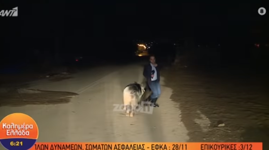 Με το που βγήκε στον αέρα του «Καλημέρα Ελλάδα» η σύνδεση με την Κινέτα, φάνηκε γουρουνίτσα να τον κυνηγά.