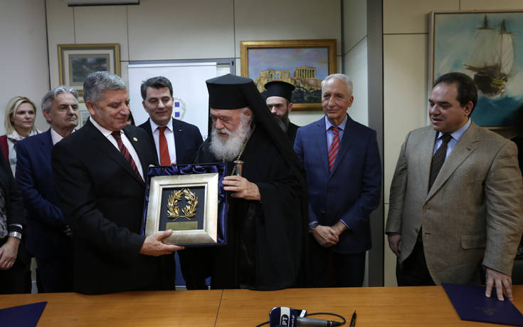 Ο Αρχιεπίσκοπος Αθηνών και πάσης Ελλάδος κ.κ. Ιερώνυμος και ο Περιφερειάρχης Αττικής Γ. υπέγραψαν σήμερα Σύμφωνο Συνεργασίας μεταξύ της Περιφέρειας Αττικής και του Φιλανθρωπικού Οργανισμού «Αποστολή» της Ιεράς Αρχιεπισκοπής Αθηνών.