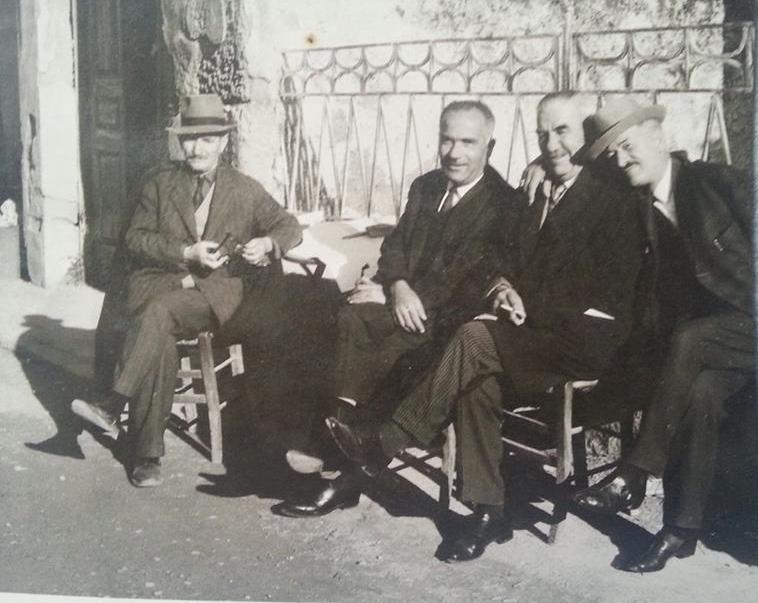 Μια συλλεκτική φωτογραφία από την Ηλεία της δεκαετίας του 60. Μια παρέα φίλων και συναδέλφων – αναπήρων πολέμου απολαμβάνουν το τσιγάρο τους σε γειτονιά του Πύργου στις αρχές του 1960. Διακρίνονται οι Χίτος, Τερζής, Μπέλμπας και Πυριόβολης.