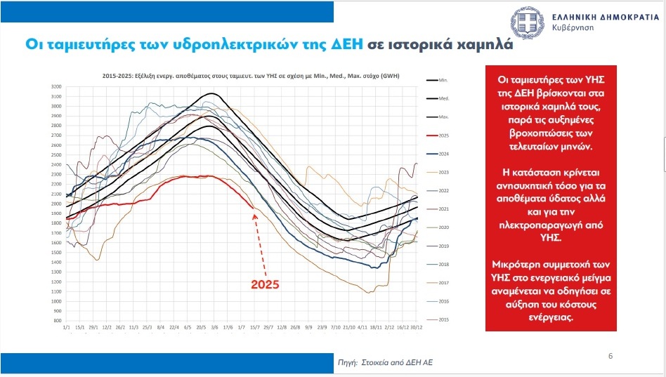 (Με βάση τα στοιχεία, η χώρα μας κατατάσσεται στην 19η θέση παγκοσμίως ως προς τον κίνδυνο λειψυδρίας ενώ η στάθμη των φραγμάτων είναι σε ιστορικά χαμηλά επίπεδα).