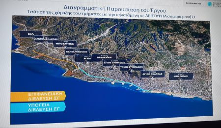 Ο κ. Καραμανλής παρουσίασε όμως και την πρόταση του υπουργείου Υποδομών και Μεταφορών για τη διέλευση της Σιδηροδρομικής Γραμμής από την πόλη της Πάτρας που προβλέπει υπογειοποίηση σε μήκος 5,16 χλμ από το ύψος της Κανελλοπούλου και άνοδος στην περιοχή της Ακτής Δυμαίων, με έξι υπόγειους σταθμούς. «Μια λύση που απελευθερώνει συνολικά 70 στρέμματα στον πυκνό ιστό της πόλης, εξασφαλίζει τη λειτουργία του προαστιακού, καταργεί όλες τις επικίνδυνες ισόπεδες διαβάσεις, ενώ εφαρμόζεται η υπογειοποίηση σε όλο το μήκος της σιδηροδρομικής γραμμής» περιέγραψε ο κ. Καραμανλής και κατέληξε: «Θέλουμε τη γνώμη σας. Ήρθε η ώρα να σταματήσει η πόλη να διχάζεται». Σύμφωνα με την πρόταση που παρουσιάστηκε ο χρόνος του ταξιδιού από την Αθήνα έως το Λιμάνι της Πάτρας μειώνεται στη 1 ώρα και 40 λεπτά κι εκτιμάται ότι στον πρώτο χρόνο λειτουργίας η επιβατική κίνηση θα ανέλθει σε 1.100.000 άτομα.