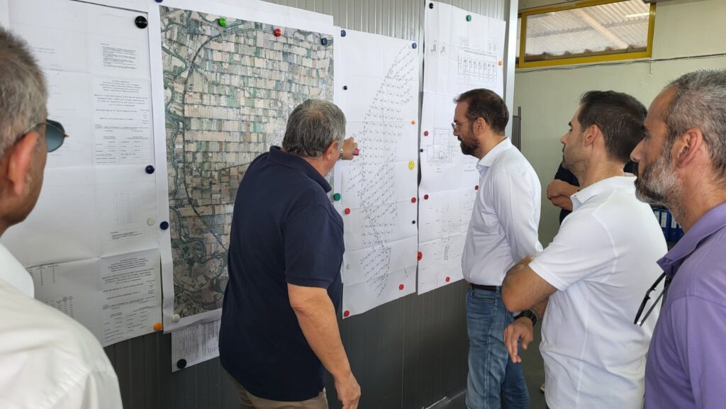 Μέχρι σήμερα, όπως διαπιστώθηκε κατά την επίσκεψή τους σε περιοχές από τις οποίες διέρχεται το δίκτυο, έχει κατασκευαστεί το 35% περίπου του δικτύου σωληνώσεων, ενώ έχουν ήδη ξεκινήσει και οι εργασίες κατασκευής του αντλιοστασίου ΑΓ1 του δυτικού δικτύου.