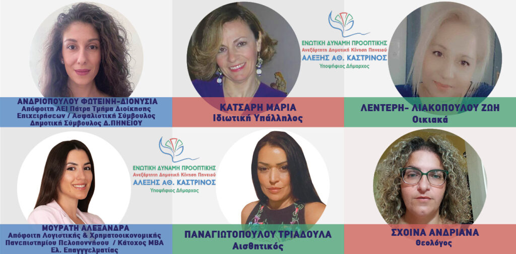 Προχωράμε την παρουσίαση του ψηφοδελτίου του συνδυασμού μας ΄΄ΕΝΩΤΙΚΗ ΔΥΝΑΜΗ ΠΡΟΟΠΤΙΚΗΣ΄΄, Ανεξάρτητη Δημοτική Κίνηση Πηνειού με τις 6 πρώτες γυναίκες υποψήφιες δημοτικοί σύμβουλοι στην ΔΕ Τραγανού.