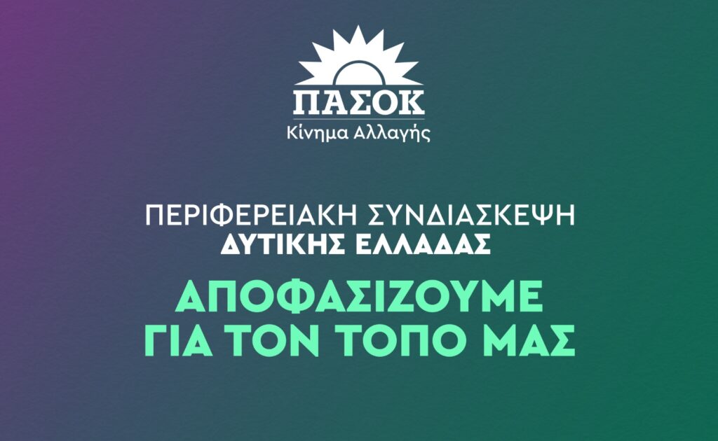Την ερχόμενη Κυριακή πραγματοποιείται στην Πάτρα η Περιφερειακή Συνδιάσκεψη της Δυτικής Ελλάδας του ΠΑΣΟΚ (Συνεδριακό Κέντρο Πανεπιστημίου Πατρών).