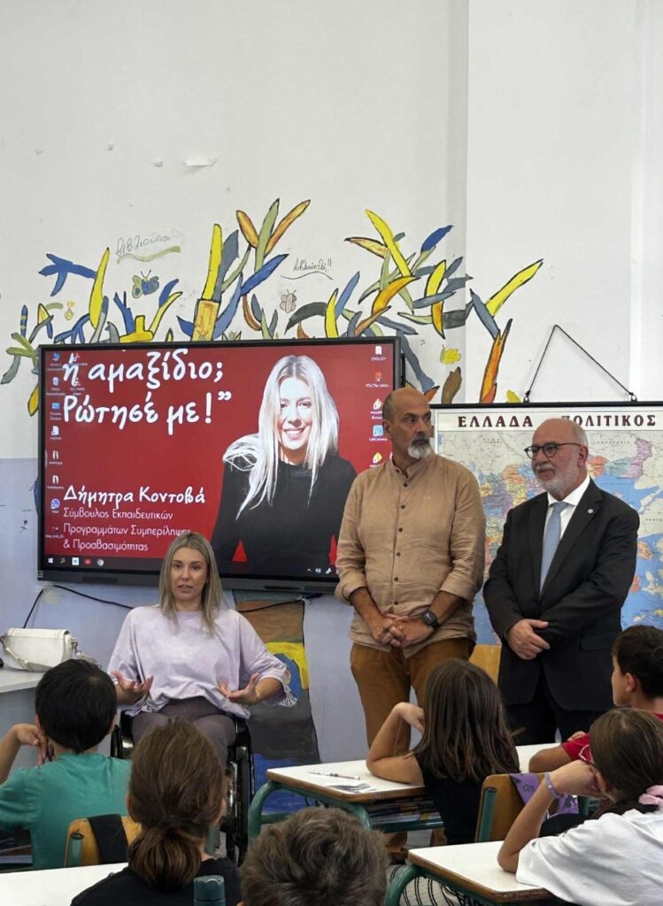 - Την Παρασκευή, 26 Σεπτεμβρίου 2025, στην Πάτρα, η Δήμητρα Κοντοβά επισκέφτηκε το 4o Δημοτικό Σχολείο (Ρούφειο), όπου ο Περιφερειάρχης Νεκτάριος Φαρμάκης, ο Αναπληρωτής Περιφερειάρχης Χαράλαμπος Μπονάνος και ο Αντιπεριφερειάρχης Τουριστικής Ανάπτυξης Πάνος Σακελλαρόπουλος την υποδέχτηκαν. Η Δήμητρα Κοντοβά είχε μια ξεχωριστή στιγμή με μαθητές της Ε και ΣΤ΄ Δημοτικού, στους οποίους μίλησε για τη σημασία της συμπερίληψης και της αποδοχής της διαφορετικότητας. Στη συνέχεια περιηγήθηκε στο κέντρο της πόλης της Πάτρας, ενώ το απόγευμα πραγματοποίησε ξενάγηση στο Αρχαιολογικό Μουσείο Πατρών στο πλαίσιο των Ευρωπαϊκών Ημερών Πολιτιστικής Κληρονομιάς, αναδεικνύοντας την προσβασιμότητα στους πολιτιστικούς χώρους.