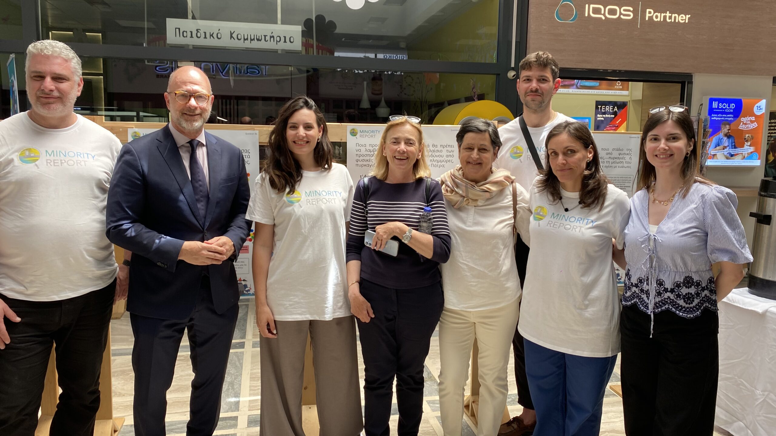 Η δράση συνεχίστηκε στην Στοά ΑΒ Βασιλόπουλος στην Ν.Ε.Ο. και Αμερικής όπου οι συμμετέχοντες απάντησαν σε ερωτηματολόγια για τις καθημερινές τους συνήθειες και το τι θεωρούν πιο σημαντικό σε περίπτωση έκθεσης τους σε πλημμύρες, πυρκαγιές και σεισμούς. Παράλληλα, ενημερώθηκαν για τη δημιουργία της καινοτόμου ψηφιακής πλατφόρμας, που βασίζεται σε τεχνητή νοημοσύνη που θα δημιουργηθεί στο πλαίσιο του προγράμματος MinorityReport.