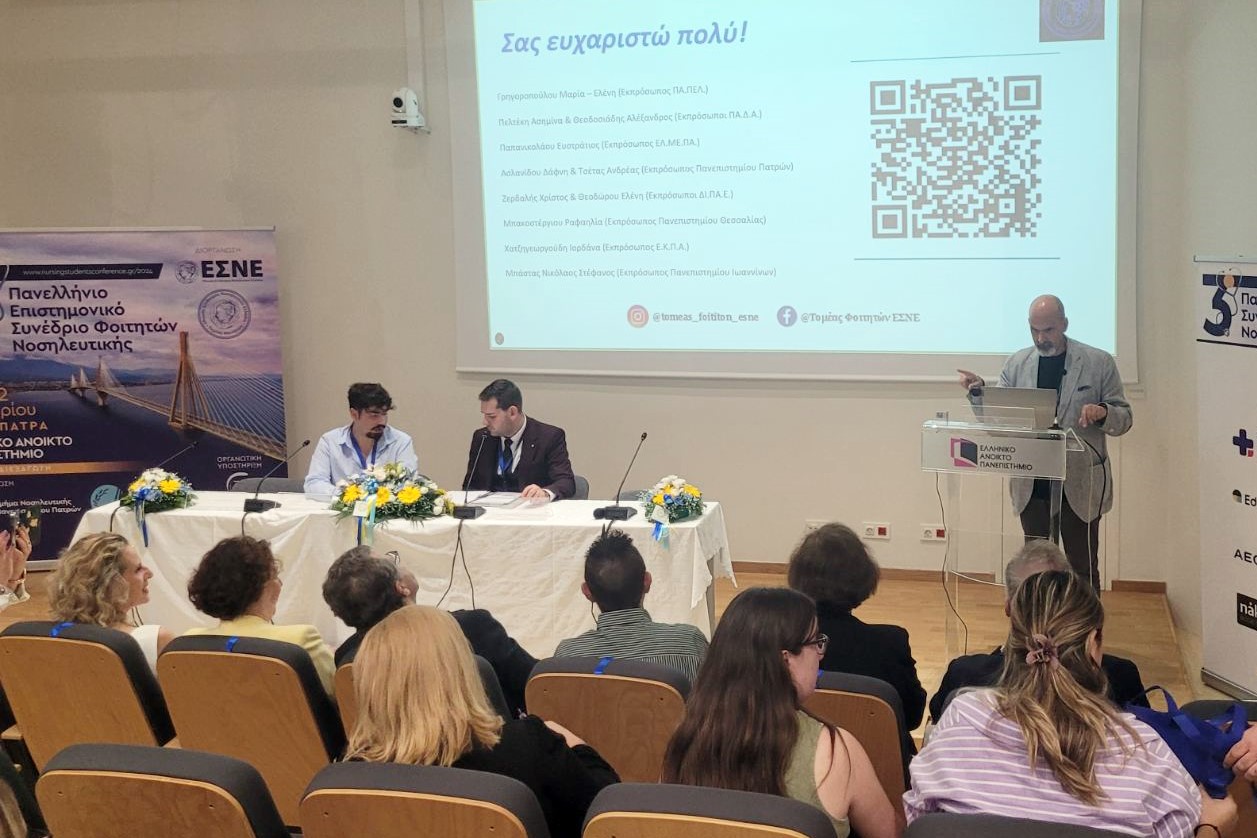 Στο 3ο Πανελλήνιο Επιστημονικό Συνέδριο Φοιτητών Νοσηλευτικής του Τομέα Φοιτητών του Εθνικού Συνδέσμου Νοσηλευτών Ελλάδας (Ε.Σ.Ν.Ε.), παραβρέθηκε ο Αναπληρωτής Περιφερειάρχης Δυτικής Ελλάδας, Χαράλαμπος Μπονάνος.