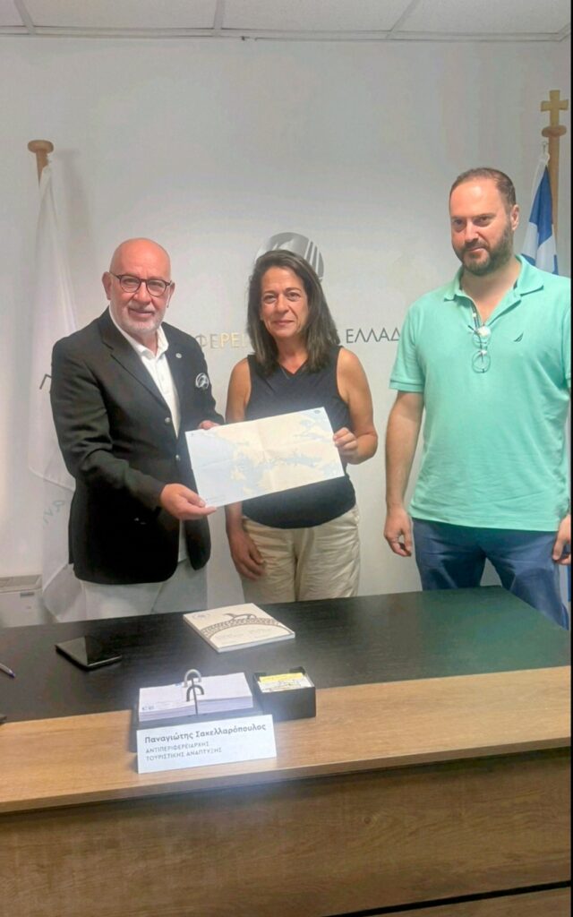 Με σκοπό τη δημιουργία συνεργειών και δικτύων για την ευαισθητοποίηση των πολιτών ως προς τη σημασία, τις εκφάνσεις και τον ρόλο της πολιτιστικής κληρονομιάς, στο πλαίσιο προβολής της νέας πολιτιστικής διαδρομής του ΥΠΠΟ με τίτλο «Ο δρόμος προς τη Δύση», πραγματοποιήθηκε συνάντηση της επικεφαλής επιβλέπουσας του έργου Δρ Αναστασίας Γκαδόλου, αρχαιολόγου στο Υπουργείο Πολιτισμού και Γενικής Δ/ντριας του Αρχαιολογικού Μουσείου Θεσσαλονίκης, με τον Αντιπεριφερειάρχη Τουριστικής Ανάπτυξης της Περιφέρειας Δυτικής Ελλάδας, Παναγιώτη Σακελλαρόπουλο και τον Διευθυντή Παιδείας, Πολιτισμού, Αθλητισμού, Τουρισμού και Απασχόλησης της ΠΔΕ, Δρ Λαυρέντιο Βασιλειάδη.