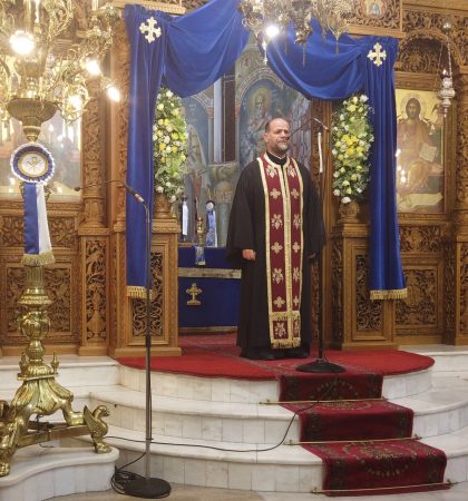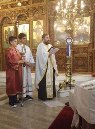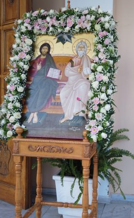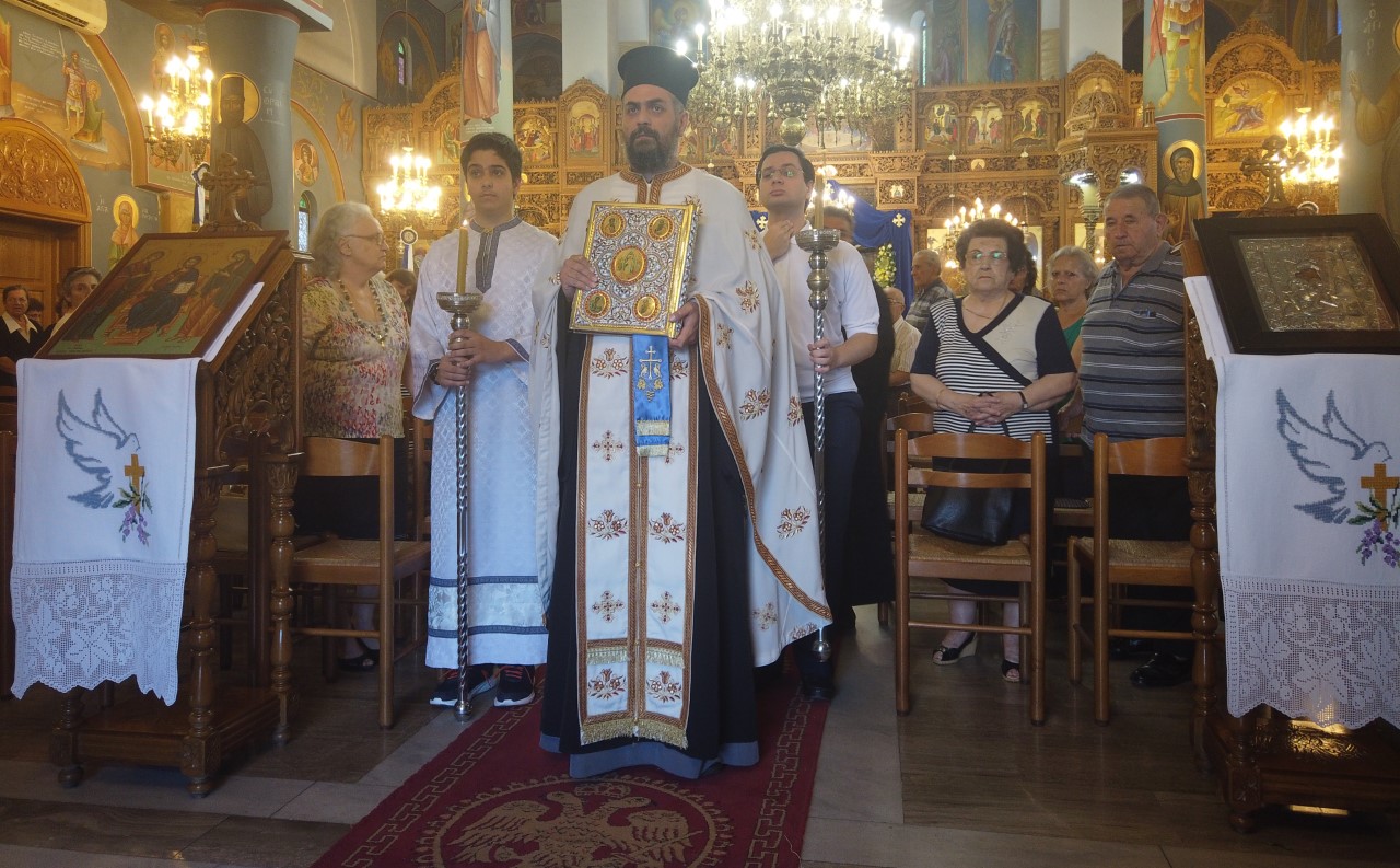 Την περίλαμπρη ημέρα της Πεντηκοστής, τιμώντας και εορτάζοντας την μεγάλη και τελευταία Δεσποτική εορτή της περιόδου του Ιερού Πεντηκοσταρίου, ο οικείος Εφημέριος π. Νεκτάριος Συμεωνίδης, ιερούργησε κατά την Πανηγυρική Θεία Λειτουργία και εν συνεχεία τέλεσε τον Εσπερινό της Γονυκλισίας, ενώ ανέγνωσε τις συνταρακτικές ευχές της γονυκλισίας και ως «διαμεσολαβητής» μεταξύ του λαού και του Θεού, ικέτευσε για την έκχυση των δωρεών του Αγίου Πνεύματος, στις ψυχές του πολυπληθούς Εκκλησιάσματος.