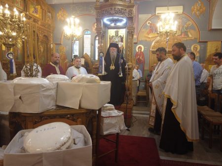 Την Δευτέρα του Αγίου Πνεύματος, τελέσθηκε Πανηγυρική Θεία Λειτουργία μετ’ αρτοκλασιών και Θείου Κηρύγματος, υπό των Αιδ. π. Παναγιώτου Δημητρακοπούλου και π. Νεκταρίου Συμεωνίδη.