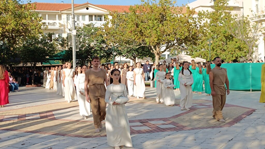 Ο Βασίλης Τσαρουχάς, Βαλκανιονίκης στην Πάλη, άναψε τον βωμό, στην κεντρική πλατεία Πύργου, επευφημούμενος από πλήθος δημοτών που γέμισαν τους χώρους πέριξ της εξέδρας, στο κέντρο της πλατείας. Προηγουμένως, μια εντυπωσιακή χορευτική παράσταση από τη Σχολή Χορού της Ζωής Ανδρίτσου, με 105 νεαρούς χορευτές και χορεύτριες της περιοχής, συνοδεία κρουστών, με χορογραφία εμπνευσμένη από τα ολυμπιακά αθλήματα, καθήλωσε τους εκατοντάδες θεατές, κερδίζοντας το θερμό χειροκρότημά τους αλλά και τα εύσημα των εκπροσώπων της Ελληνικής Ολυμπιακής Επιτροπής.
