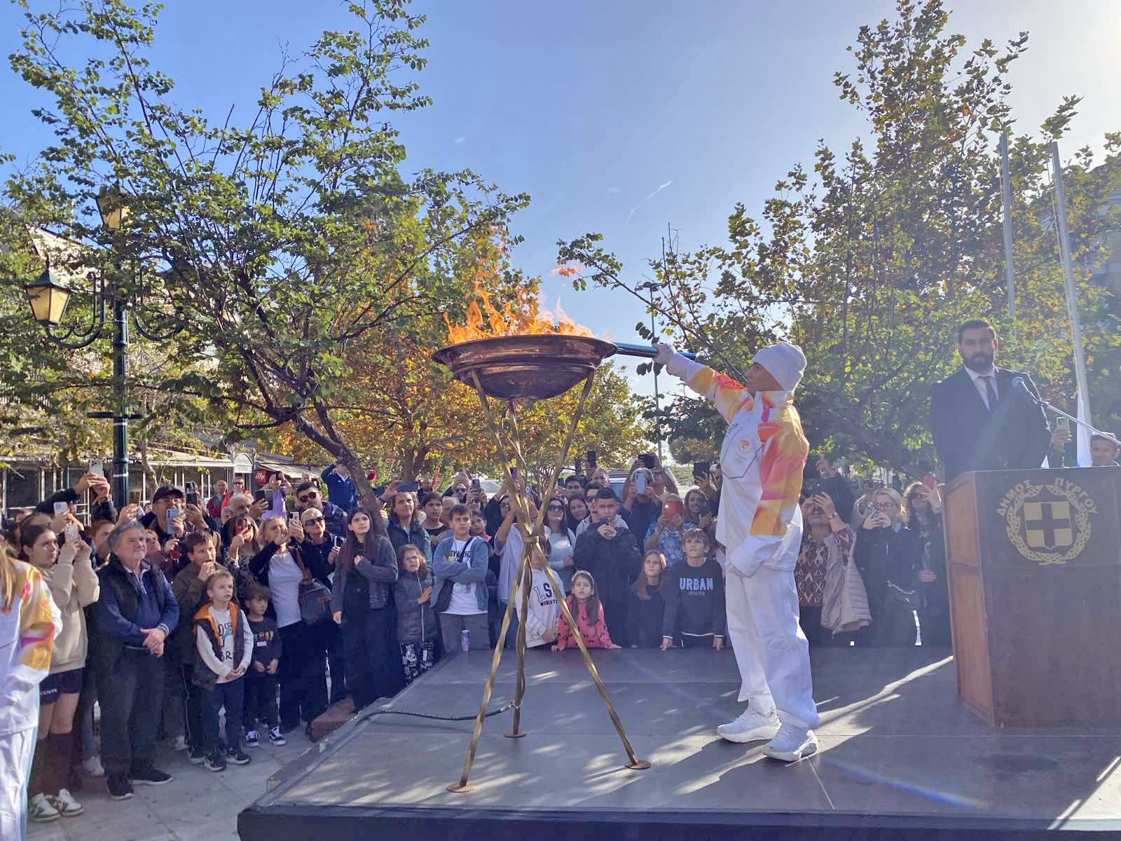 Ο Βασίλης Τσαρουχάς, Βαλκανιονίκης στην Πάλη, άναψε τον βωμό, στην κεντρική πλατεία Πύργου, επευφημούμενος από πλήθος δημοτών που γέμισαν τους χώρους πέριξ της εξέδρας, στο κέντρο της πλατείας. Προηγουμένως, μια εντυπωσιακή χορευτική παράσταση από τη Σχολή Χορού της Ζωής Ανδρίτσου, με 105 νεαρούς χορευτές και χορεύτριες της περιοχής, συνοδεία κρουστών, με χορογραφία εμπνευσμένη από τα ολυμπιακά αθλήματα, καθήλωσε τους εκατοντάδες θεατές, κερδίζοντας το θερμό χειροκρότημά τους αλλά και τα εύσημα των εκπροσώπων της Ελληνικής Ολυμπιακής Επιτροπής.
