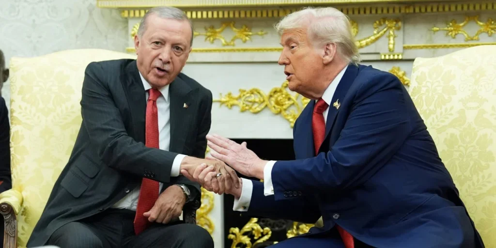 Μιλώντας σε δημοσιογράφους κατά την πτήση της επιστροφής του από το Αζερμπαϊτζάν, όπου συμμετείχε στη 12η Σύνοδο Κορυφής του Οργανισμού Τουρκογενών Κρατών ο Τούρκος πρόεδρος επεσήμανε ότι η πρόσφατη συνάντησή του με τον πρόεδρο των ΗΠΑ, Ντόναλντ Τραμπ, στον Λευκό Οίκο βελτίωσε το κλίμα στις διμερείς σχέσεις.