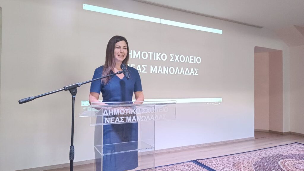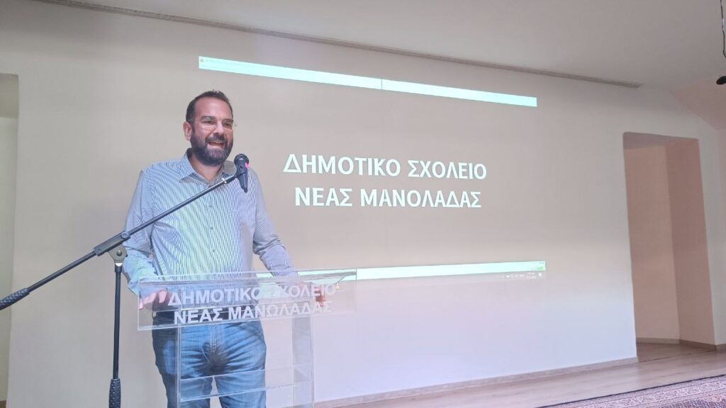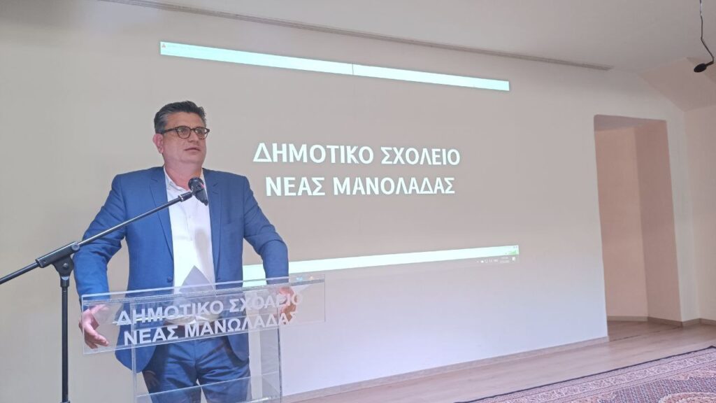 Το παλαιό κτίριο του Δημοτικού Σχολείου Νέας Μανολάδας, μετά τον σεισμό του 2008, είχε κριθεί επικίνδυνο και κατεδαφιστέο. Έκτοτε, οι μαθητές και οι εκπαιδευτικοί φιλοξενούνταν σε λυόμενο συγκρότημα που αναπτύχθηκε εντός του προαύλιου χώρου του σχολείου. Έπρεπε να περάσουν 12 ολόκληρα χρόνια για ξεκινήσει επιτέλους το έργο. Και το ξεκινήσαμε, στην αρχή της πρώτης μας θητείας ως Δημοτική Αρχή. Με την αμέριστη στήριξη της Περιφερειακής Αρχής και των Κτιριακών Υποδομών Α.Ε, που τους ευχαριστώ βαθύτατα. Με την ουσιαστική στήριξη του Υπουργείου Παιδείας, το οποίο και ευχαριστούμε θερμά στο πρόσωπου της Υπουργού, της κυρίας Ζαχαράκη, που μας τιμά σήμερα με την παρουσία της.