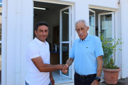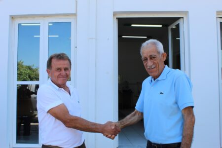 (Ο Γιάννης Λυμπέρης με τους προέδρους της Πηνείας στο πλευρό του).