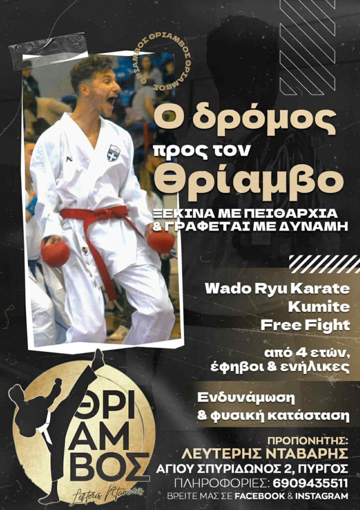 Στον Πύργο, στην οδό Αγίου Σπυρίδωνος 2, η σχολή Θρίαµβος Karate Academy έχει καταφέρει να